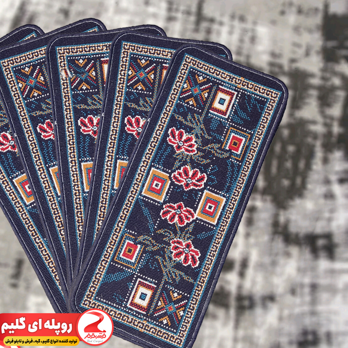رو پله ای گلیم فرش طرح مینا سرمه ای