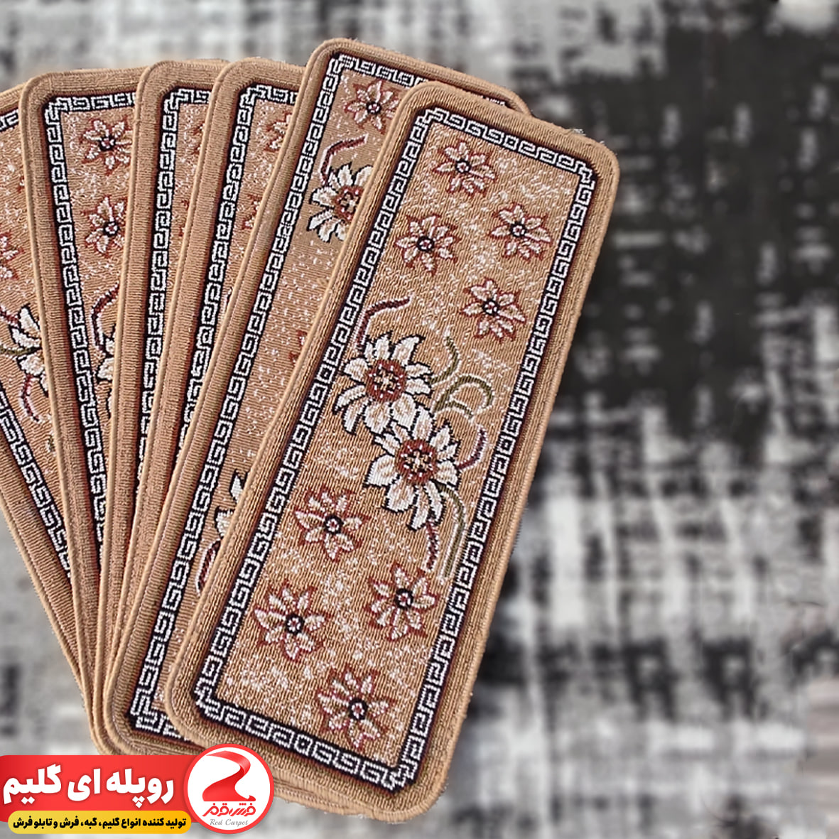 رو پله ای گلیم فرش طرح ورساچ بادامی